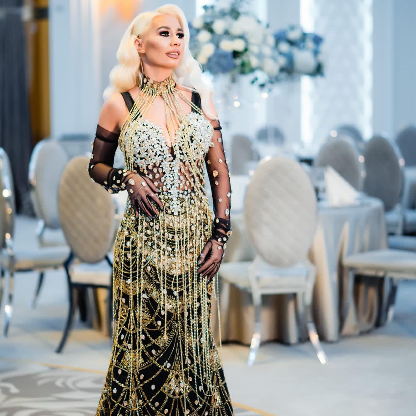 Rochie elegantă cu croială bias-cut, decolteu drapat și spate gol. Perfectă pentru evenimentele speciale.